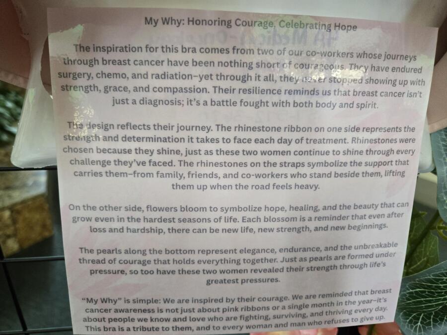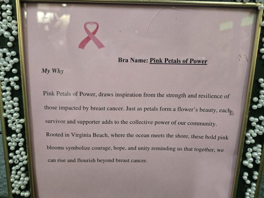 BraZazzle is an annual event to remember, honor, celebrate and support those battling breast cancer, both past and present. Individuals and teams from Sentara Princess Anne Hospital have chosen a personal story of courage to inspire their beautiful creations in the following theme: MY WHY